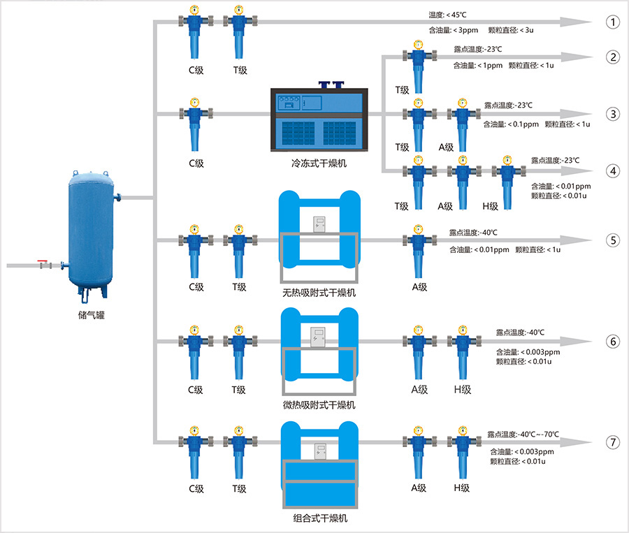 ④ 醫(yī)院,呼吸,制藥,無菌包裝,食品工業(yè)